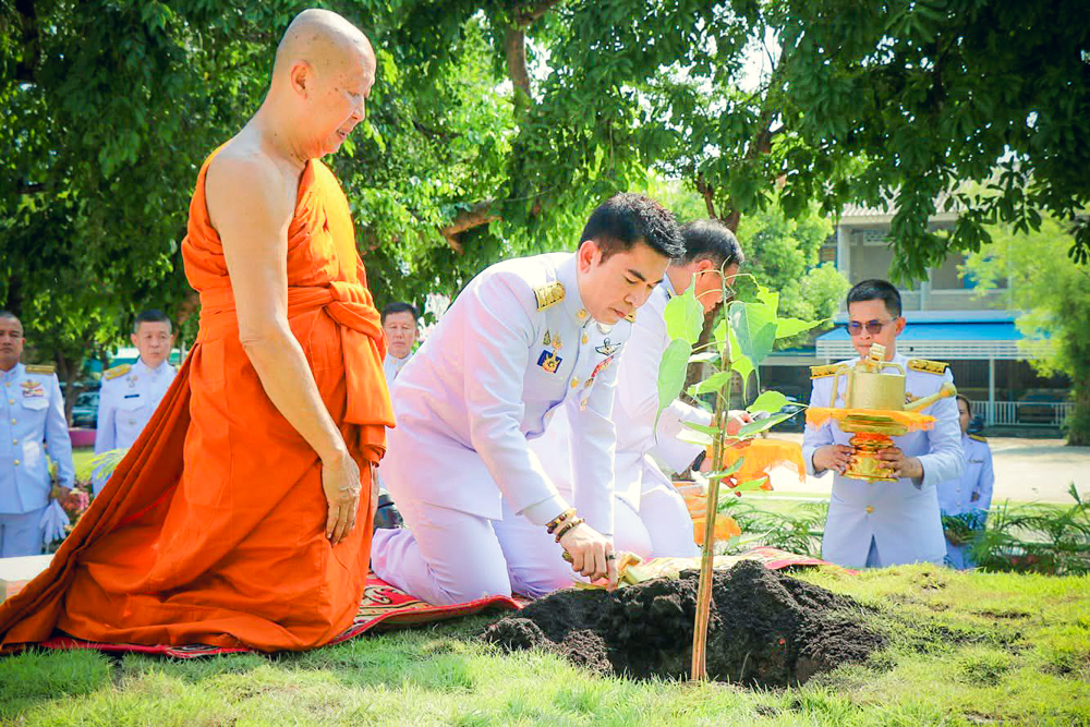 ,ร.ต.ต.ฟัด กร่ำศรี รอง สว.(ป.) กก.ตชด.๑๓ เข้าร่วมพิธีปลูก "พระศรีมหาโพธิทศมราชบพิตร" พิธีทำบุญตักบาตรข้าวสารอาหารแห้ง