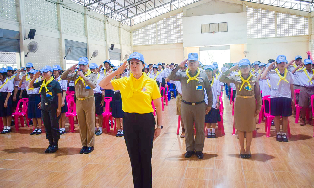 ให้กับนักเรียนใหม่ปีการศึกษา ๒๕๖๘ ระดับชั้น มัธยมศึกษาปีที่ ๑ และ๔ เพื่อเป็นการแสดงความจงรักภักดีต่อสถาบันชาติ ศาสนา พระมหากษัตริย์