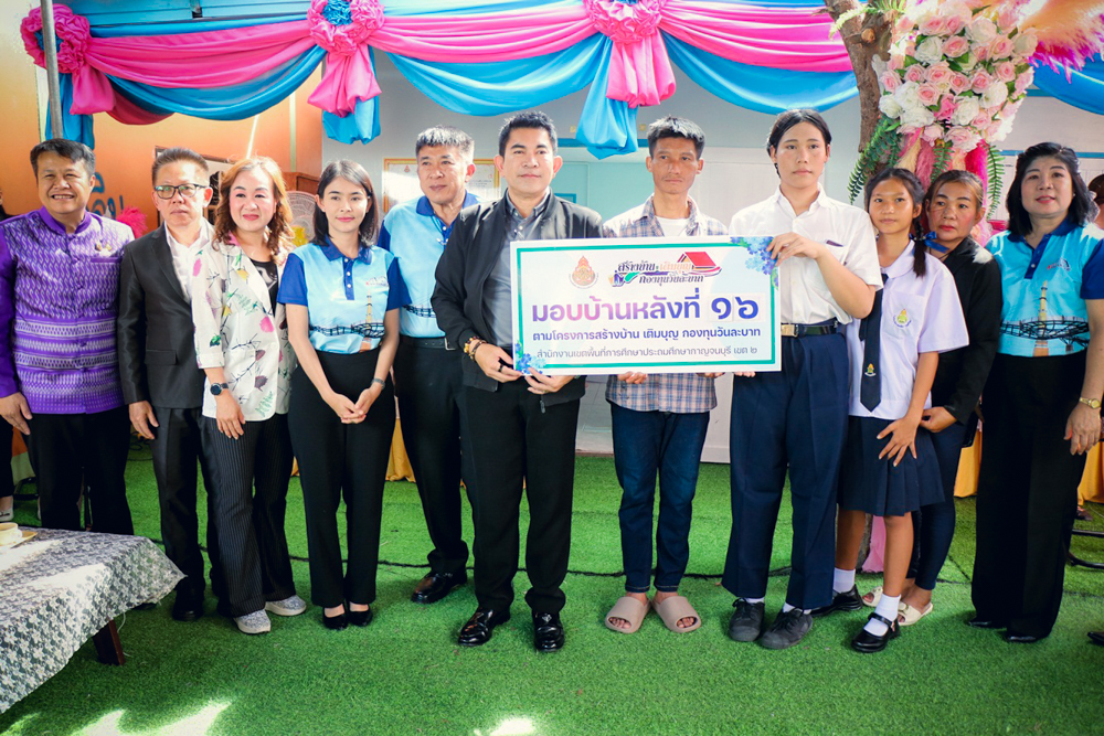 จำนวน ๕ นาย ร่วมพิธีมอบบ้านหลังที่ ๑๖ ให้เด็กนักเรียนยากจนด้อยโอกาส เพื่อมอบเป็น “ของขวัญวันเปิดเรียน”เนื่องในโอกาสวันเปิดภาคเรียนที่ ๑