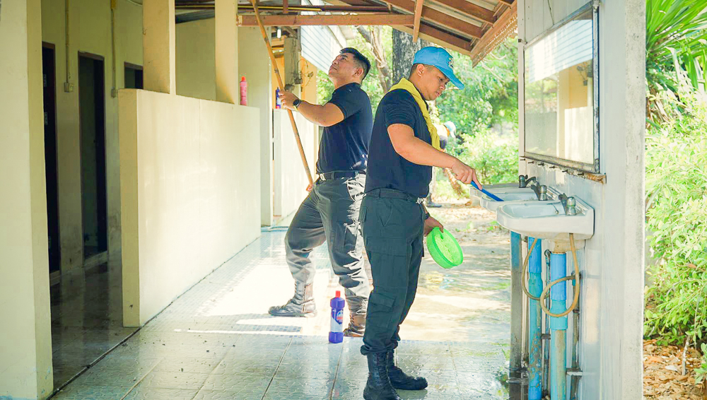 พ.ต.ท.วินัย รัตนา สว.กก.ตชด.๑๓, ว่าที่ ร.ต.อ.วิโรจน์ สามทองบุตร รอง สว.กก.ตชด.๑๓ (จอส.,กร) นำกำลังพลจิตอาสา กก.ตชด.๑๓ จำนวน ๔๓ นาย