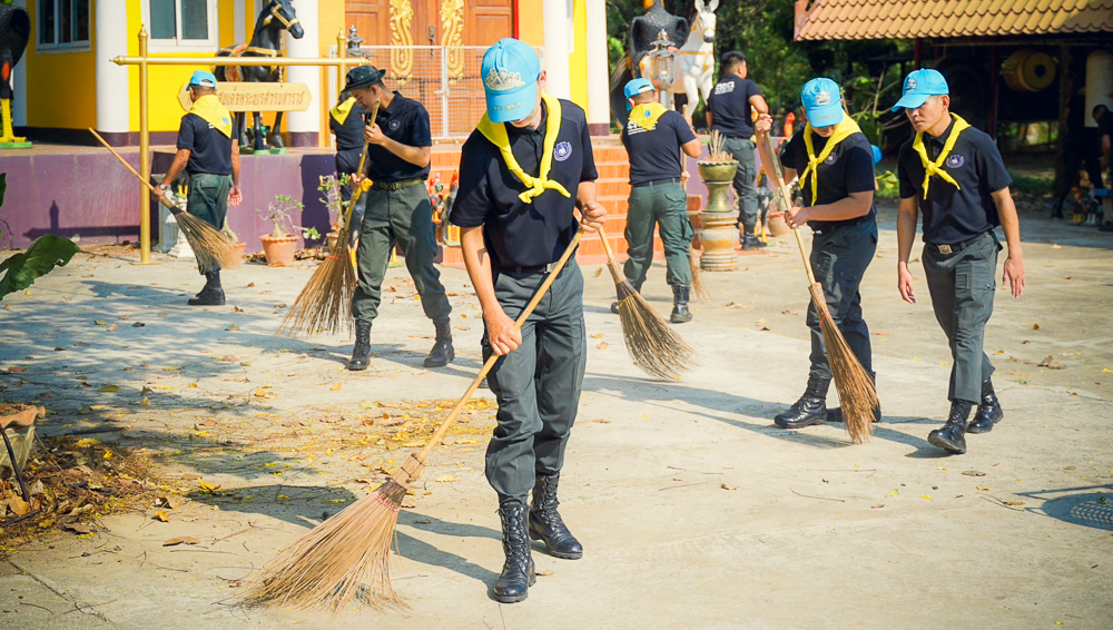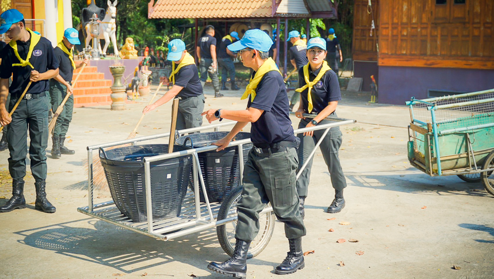 จัดกิจกรรมจิตอาสา “เราทำความดี ด้วยหัวใจ” จิตอาสาพัฒนาศาสนสถาน กวาดใบไม้และเก็บขยะบริเวณวัด