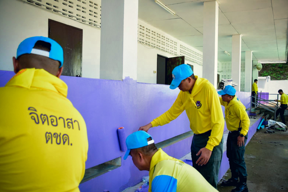 ร่วมทำกิจกรรมจิตอาสา ทาสีอาคารเรียนและพัฒนาอาคารเรียน ณ รร.ตชด.วัดสุธาสินี ต.บ้องตี้ อ.ไทรโยค จว.กาญจนบุรี