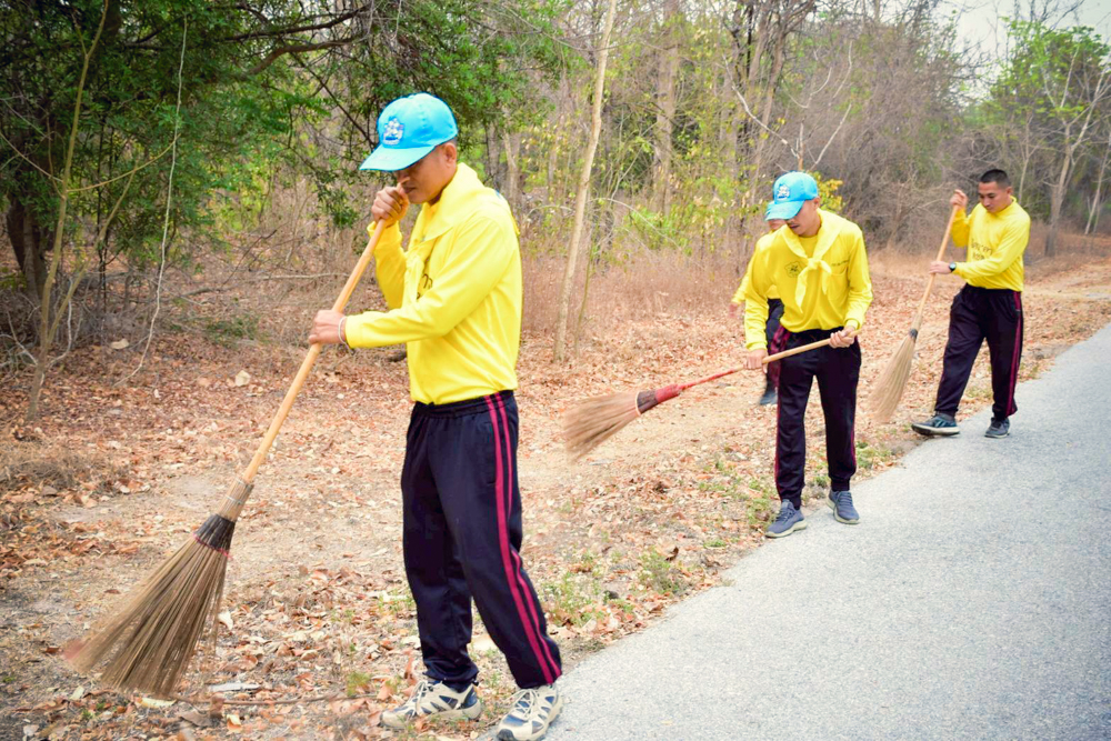 ร่วมกันทำแนวกันไฟ ฝังกลบเศษวัชพืช ยิงกระสุนเมล็ดพันธุพืช ทำความสะอาดเก็บขยะรอบๆ พื้นที่โครงการอนุรักษ์พันธุกรรมพืช