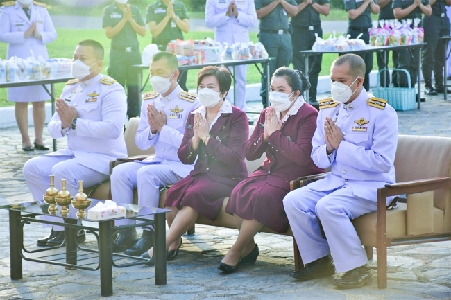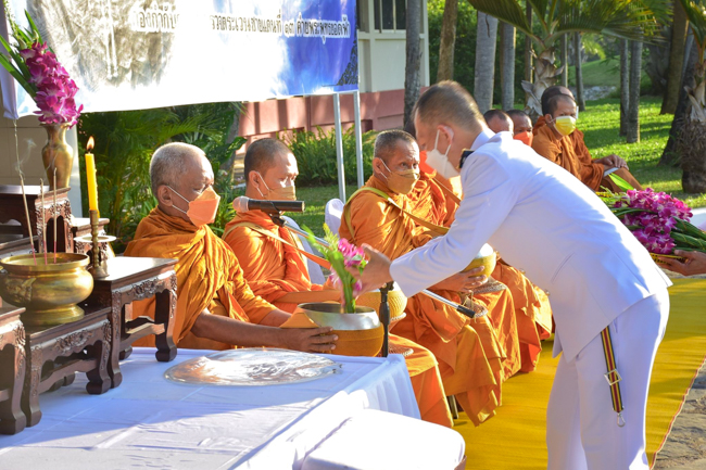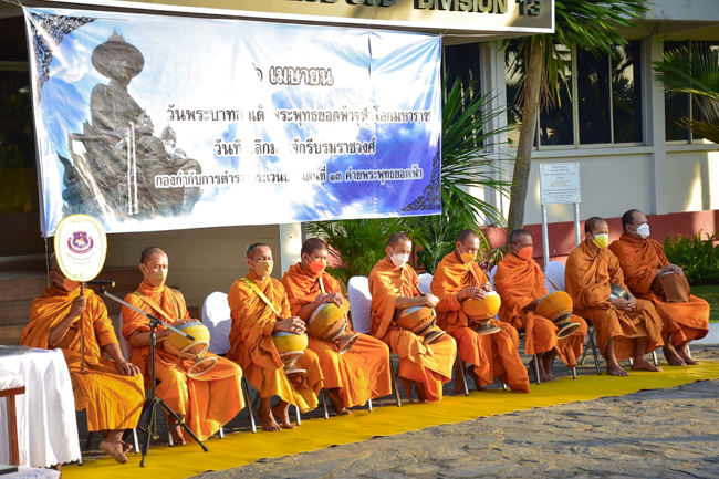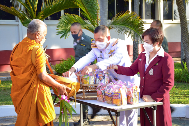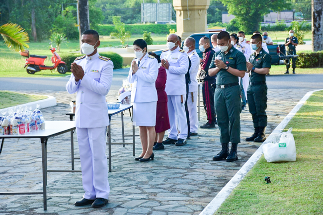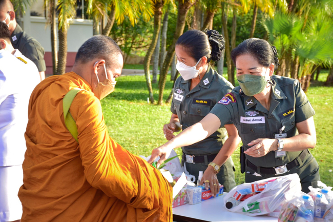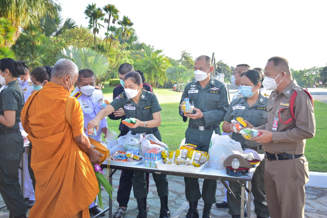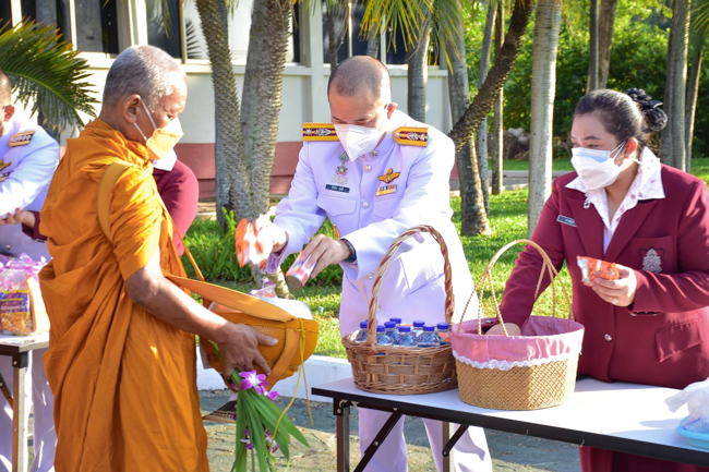 ,พ.ต.ท.สุพงศ์สิทธิ์ แจ้งพันธ์ รองผกก.ตชด.๑๓ พร้อมด้วยข้าราชการตำรวจในสังกัด ร่วมทำบุญตักบาตรข้าวสารอาหารแห้ง และวางพานพุ่มสักการะ