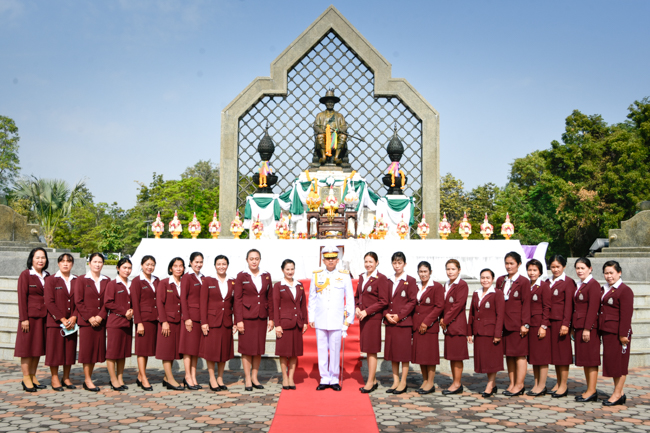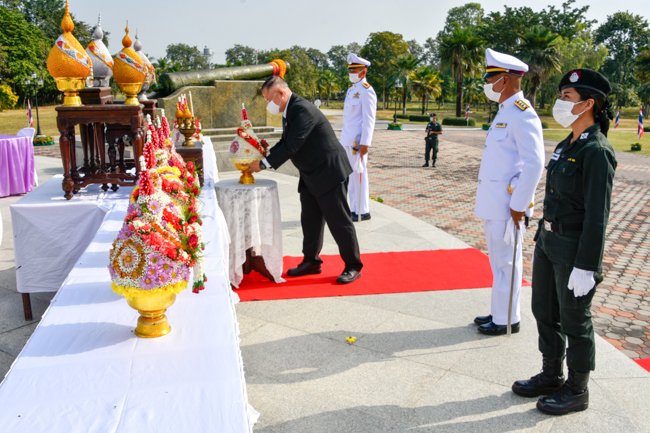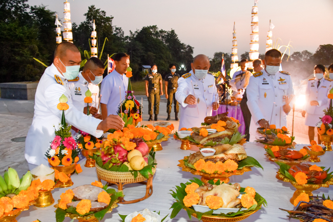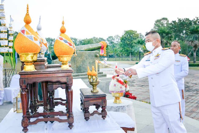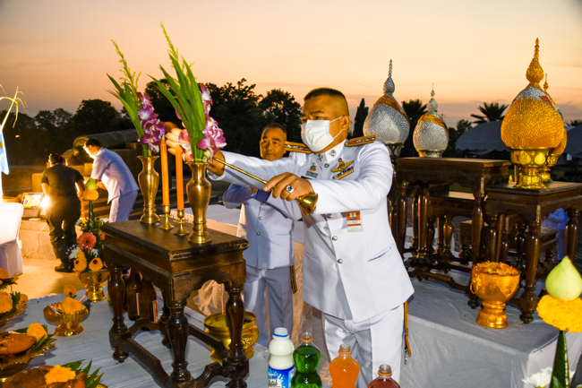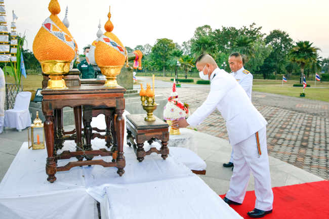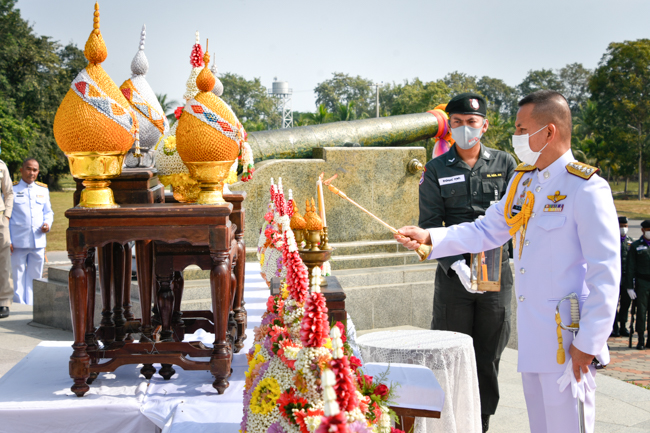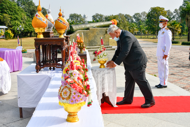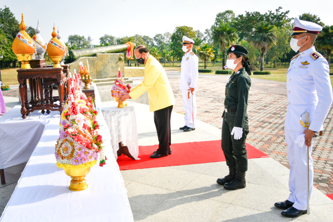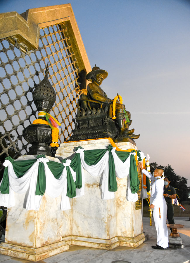 ขึ้นสู่ลานพระบรมราชานุสาวรีย์ จุดเทียน ธูป เครื่องทองน้อย และวางพานพุ่มดอกไม้สดถวายราชสักการะเสร็จพิธี