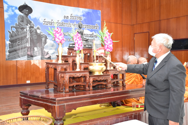 พระบรมราชานุสาวรีย์ พระบาทสมเด็จพระพุทธยอดฟ้าจุฬาโลกมหาราช พร้อมคณะแม่บ้านตำรวจสังกัด กก.ตชด.๑๓ เนื่องในวันคล้ายวันสถาปนาค่ายพระพุทธยอดฟ้า เวลา๐๘.๐๐น.ข้าราชการตำรวจ และคณะแม่บ้านเข้าร่วมในพิธีสงฆ์ ณ หอประชุมเจ้าพระยาจักรี ถวายภัตตาหาร เครื่องจตุปัจจัยไทยธรรม, เวลา ๐๙.๓๐ น. เริ่มพิธีถวายพานพุ่ม ,หัวหน้าส่วนราชการ แขกผู้มีเกียรติ ถวายพานพุ่มตามลำดับ พ.ต.ท.ทรงศักดิ์ ไชยลาภ รอง ผกก.ฯรรท.ผกก.ตชด.๑๓ กล่าวถวายราชสดุดีแด่ พระบาทสมเด็จพระพุทธยอดฟ้าจุฬาโลกมหาราช และเชิญ พล.ต.ท.วิชิต ปักษา ผบช.ตชด. ประธานในพิธี